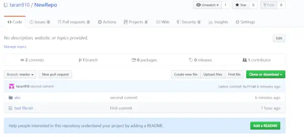 注記: README ファイルを使用して Git リポジトリを初期化することを選択でき、さらにそのファイルにプロジェクトの詳細を記載することもできます。これは、人々がこのリポジトリの内容を理解するのに役立ちます。ただし、絶対に必要というわけではありません。ただし、GitHub が提供するインターフェイスを使用して README ファイルでリポジトリを初期化する場合、ローカル リポジトリにはこの README ファイルが存在しません。