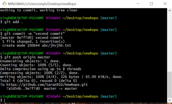 ファイルが変更され、新しいファイルがローカル リポジトリに追加されたとします。変更を git リポジトリに保存するには:
