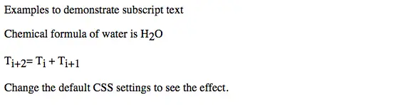 > <> html> >>> <> head> >>> > <> style> >>> > sub {> > vertical-align: sub;> > font-size: medium;> > }> > style>頭> |