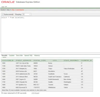 Input: SELECT l.location_id, l.street_address, l.postal_code, c.country_name FROM locations l JOIN countries c USING(country_id) WHERE c.country_id'IT'; Output:>